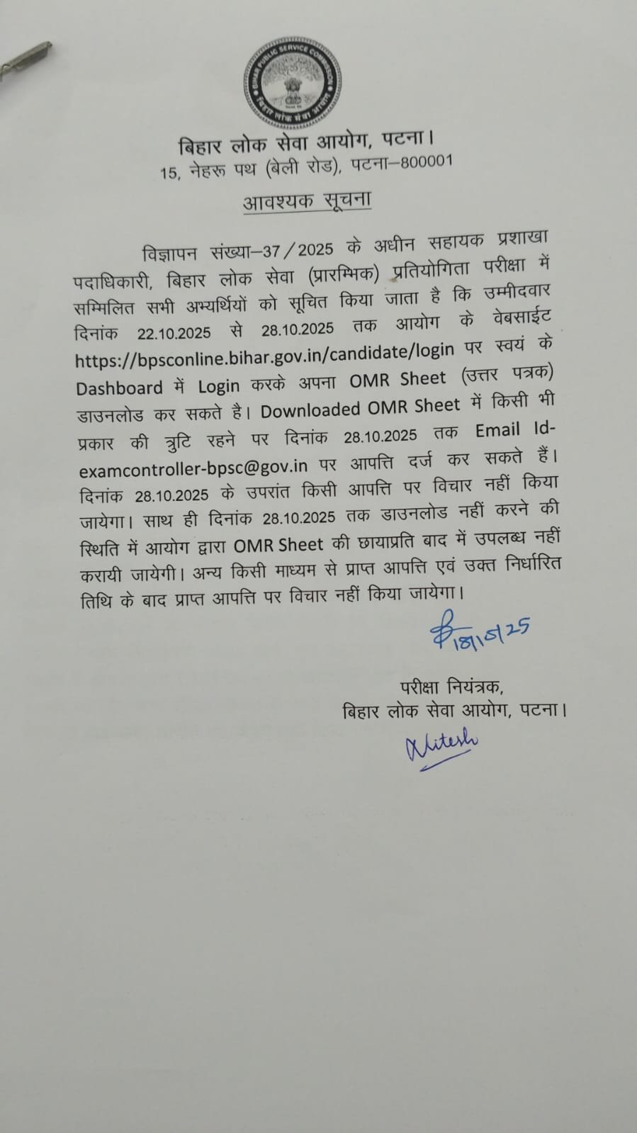| Download OMR Sheet Notice | CLICK HERE |