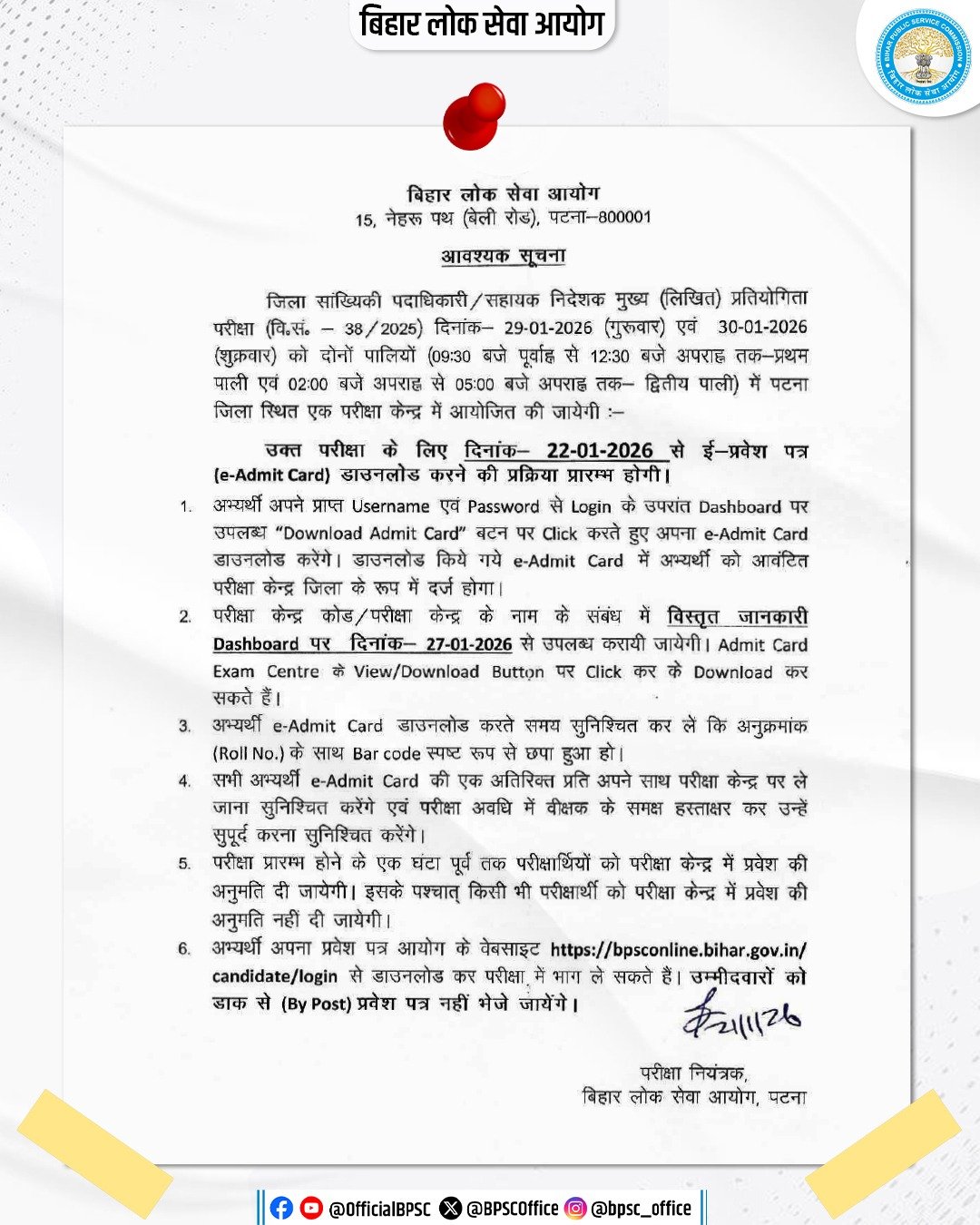 BPSC DSO/ AD Mains Admit Card 2026BPSC DSO/ AD Recruitment 2025SarkariResultNow.Com |