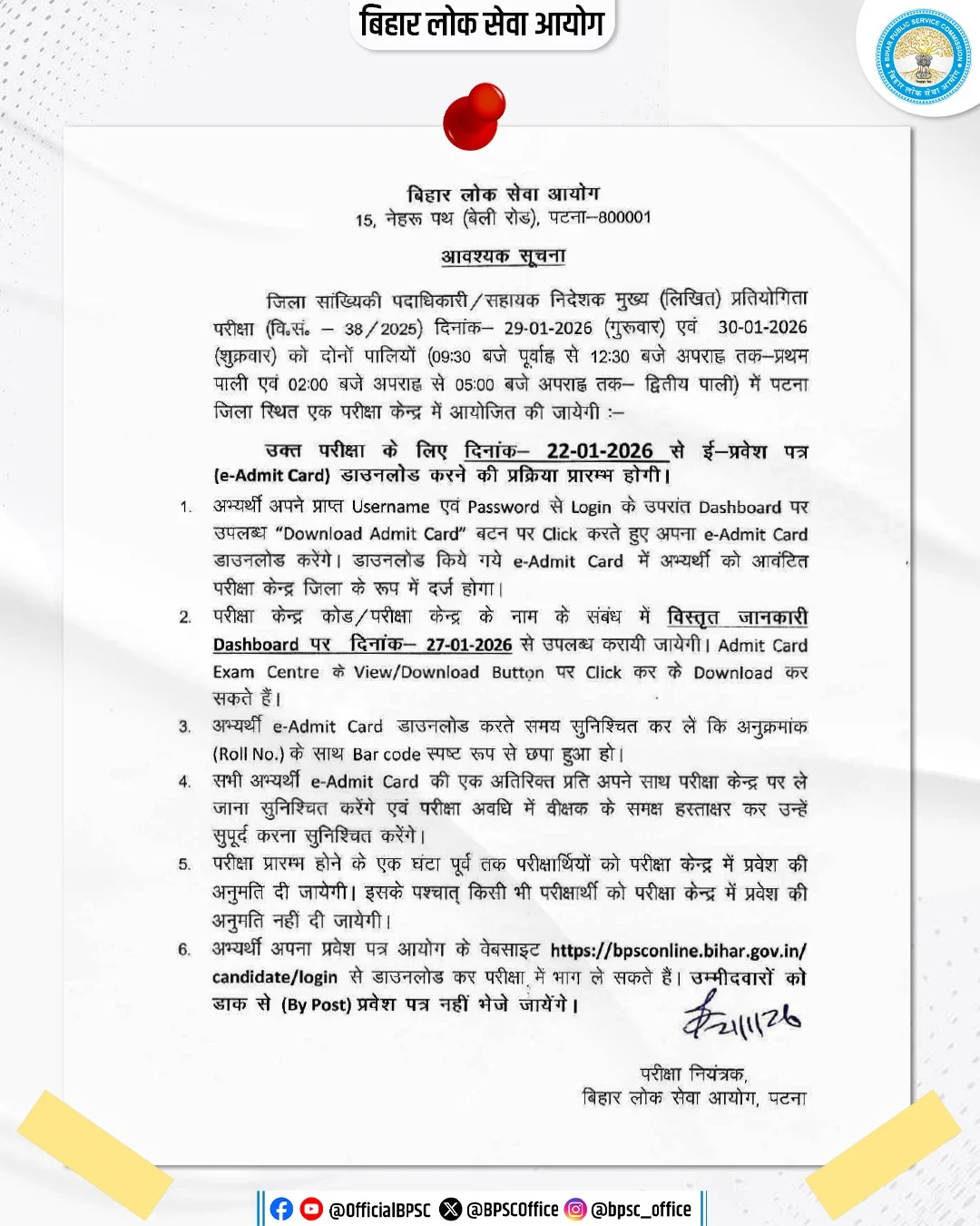 The main examination will be held from 29-30 January 2026. Candidates can now easily check and download their Admit Card/ Hall Ticket through the direct links provided in the “Important Links” section.