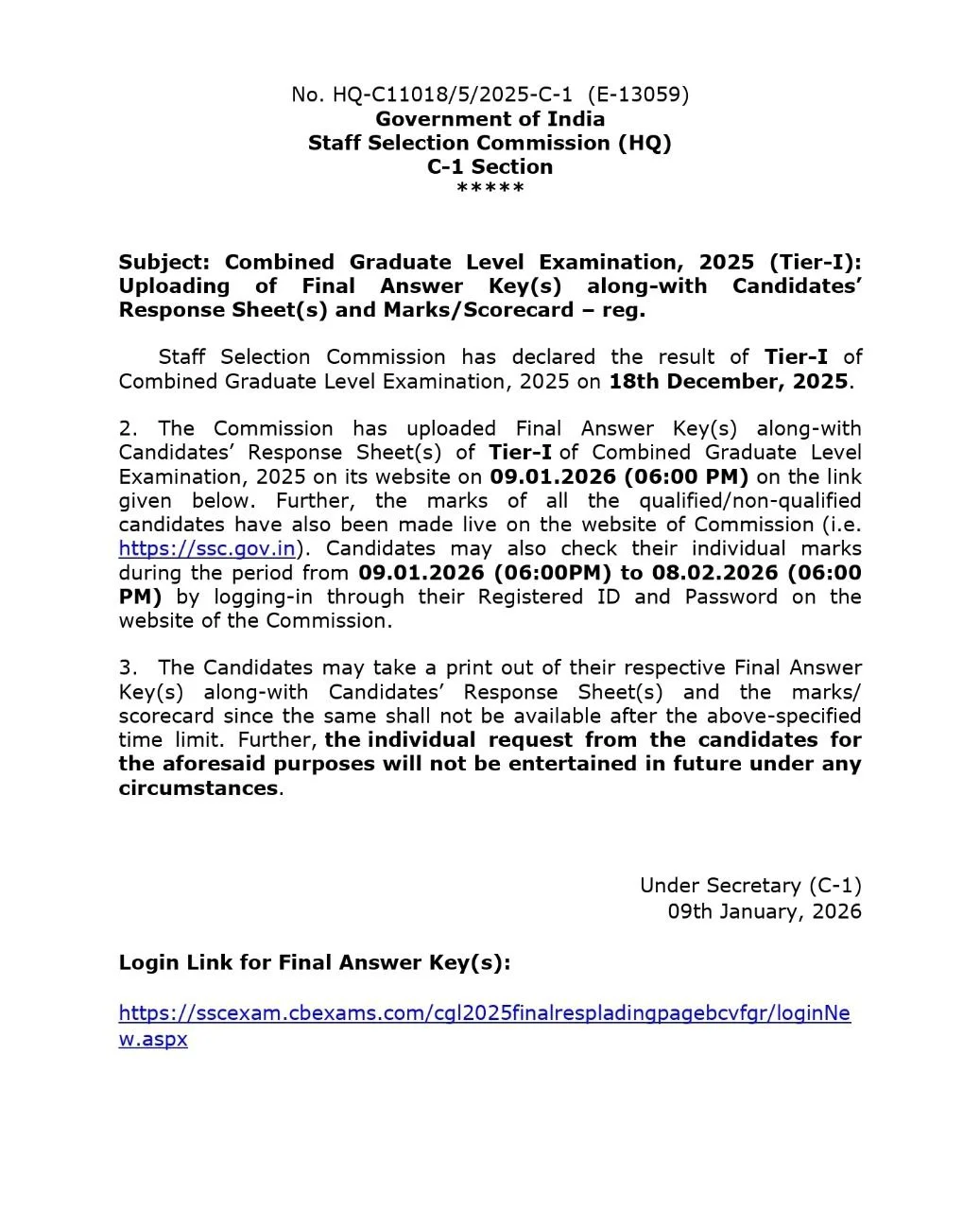 Check Tier-I Final Answer Key Notice CLICK HERE